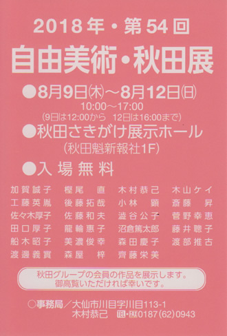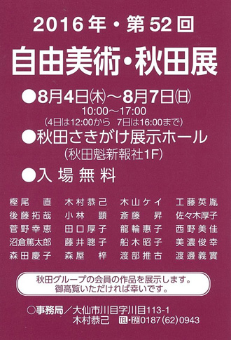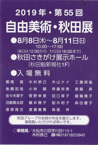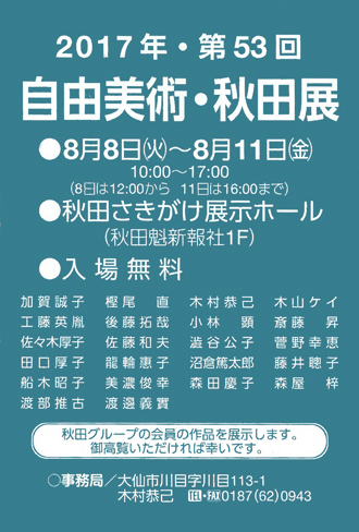 第51回 自由美術・秋田展 8月20日(木)~23日(日) 秋田さきがけ展示ホール