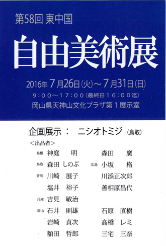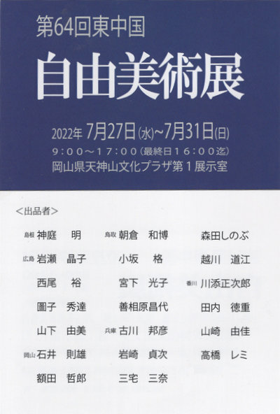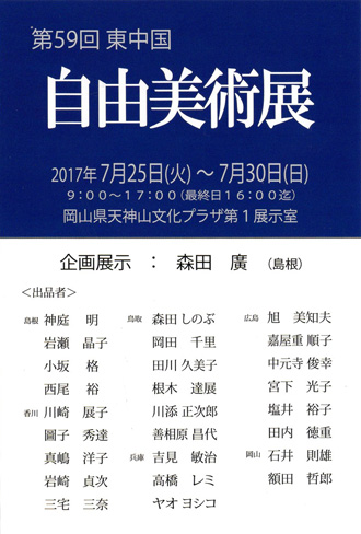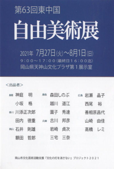 第57回 東中国自由美術展 7月28日(火)~8月2日(日) 岡山県天神山文化プラザ