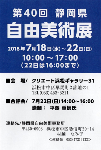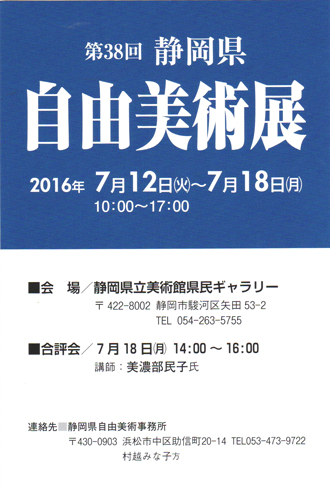 第37回 静岡県自由美術展 7月7日(火)~12日(日) プラサ ヴェルデ 2F 市民ギャラリー