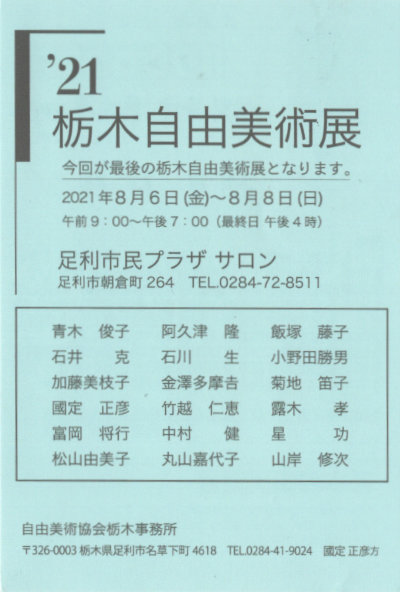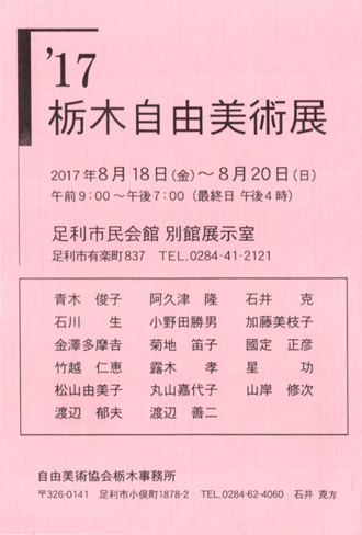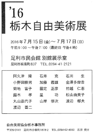 '15 栃木自由美術展 7月17日(金)~19日(日) 足利市民会館 別館展示室