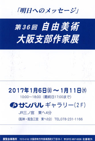第34回 自由美術 大阪支部作家展 1月9日(金)~14日(水) サンパルギャラリー