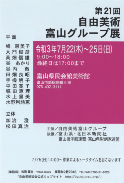 第18回 自由美術富山グループ展 7月23日(木)~26日(日) 富山県民会館美術館
