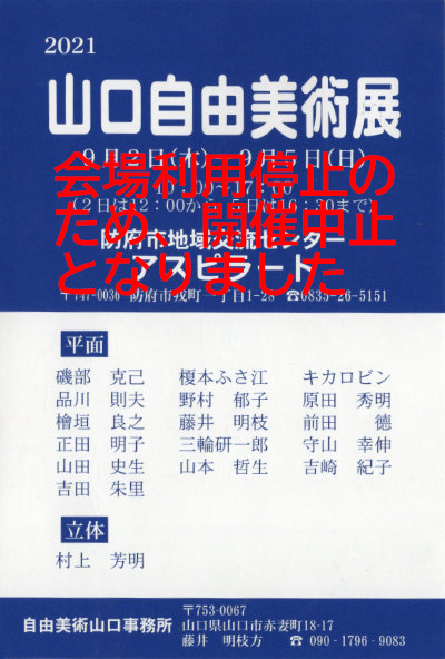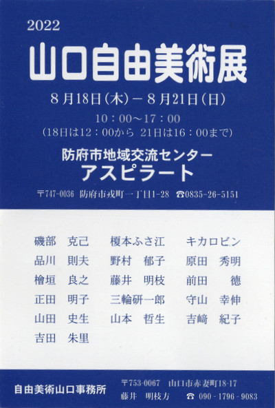2015 山口自由美術展 8月27日(木)~30日(日) 防府市地域交流センター アスピラート