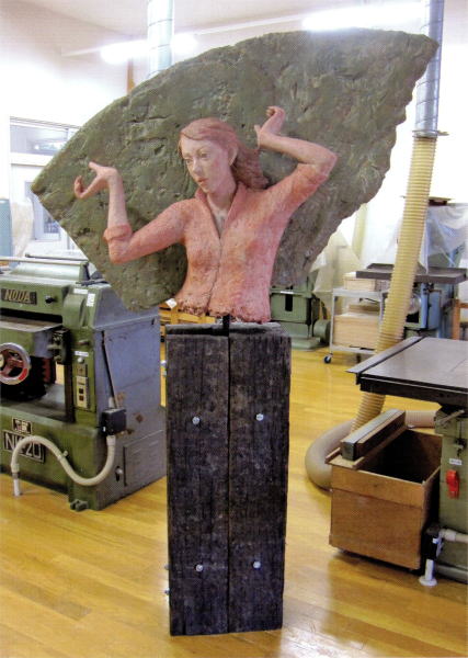 松田真治 「市井の聖母子 132×55×80」 2021年自由美術展