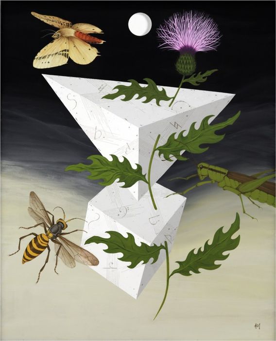 坂口利夫 「花・虫と幾何形体」 2018年自由美術展